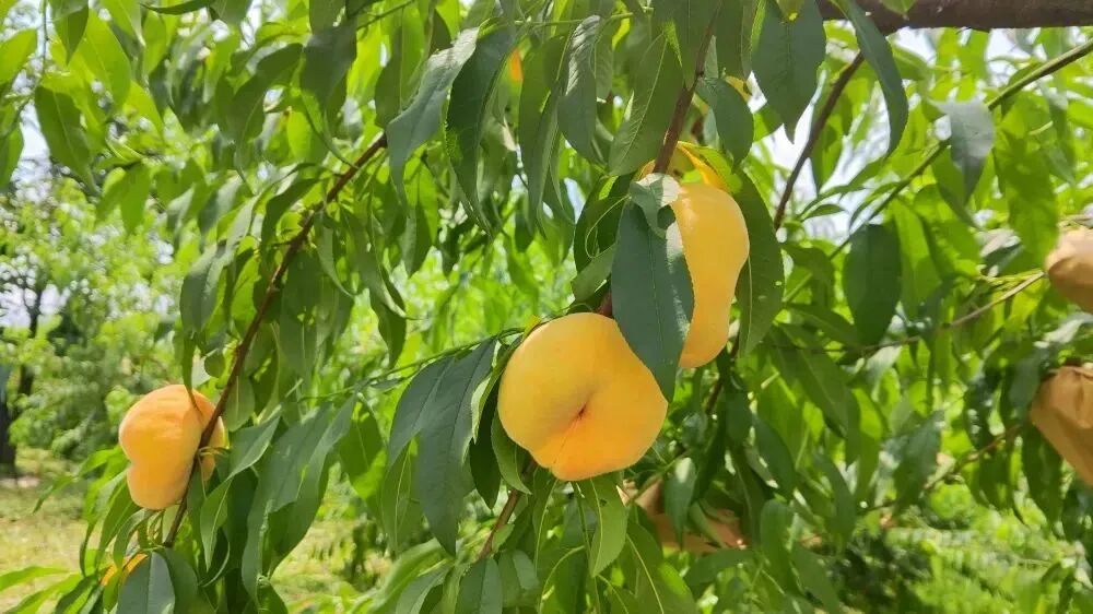 盛夏骄阳 甘溪镇十字岭园区 黄桃熟透啦 金灿灿的果实缀满枝头 为园区添了一抹灵动的亮色 园区黄桃种类多样 黄肉油桃、锦绣黄桃 西尾黄桃、黄蟠桃等 远远望去 金黄的果子在绿叶间若隐若现 走近瞧 浓郁的果香便直钻鼻腔 黄桃表皮细腻有光泽 咬上一口 鲜嫩的果肉在口中化开 汁水瞬间充盈唇齿 甜中带着一丝恰到好处的清爽 令人回味无穷 黄桃不仅美味 营养更是丰富 维生素C增强免疫力 膳食纤维助力消化 多种矿物质为身体补充能量 园区尚有七、八万斤黄桃待采 这份甜蜜将持续到八月底 快约上亲友 奔赴甘溪镇十字岭园区 亲手采摘金黄鲜果 让这口清甜在舌尖满溢 定格夏日甜蜜时光~ 采摘电话: 13891531058 a