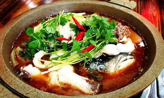 石泉的石锅鱼,多选用鲶鱼或鲤鱼,将鱼剁小块,鱼头对称切半,腌制5分钟后,加味精,并以蛋清拌匀,同时,将熬制好的高汤倒入石锅中,加调味料以及自炒鱼香料。