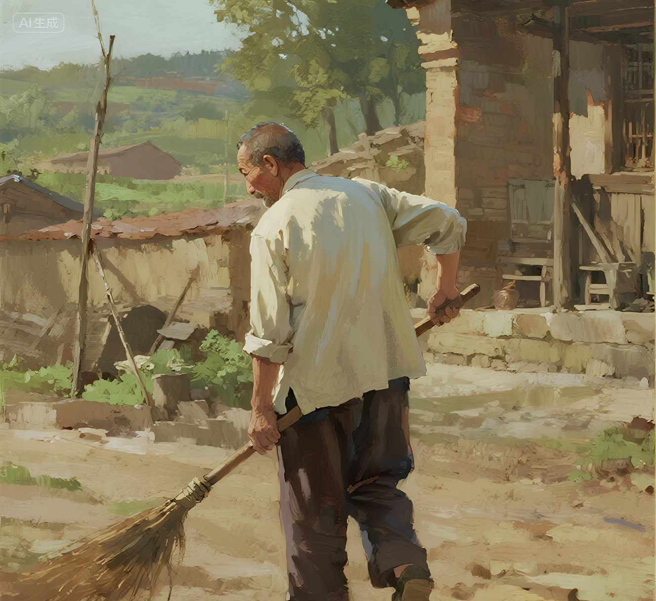 余晖漫过霜白头发