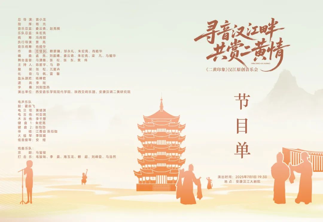 二黄 ——汉江原创音乐会—— 安康 印象 寻音汉江畔 一场穿越时光的音乐史诗 一次故乡非遗的深情告白 一席不容错过的艺术盛宴 共赏二黄情 乐韵如刀雕岁月,史海回声荡九霄。 经典为标恒久立,血脉融刻骨难消。 一曲宫商裁云片,千愁百转伴今宵! 《安康市汉调二黄传承保护发展条例》颁布一周年之际,一场汉调二黄的全新视角,西安音乐学院横向科研项目。西安音乐学院科研处、现代学院、陕西交响乐团与安康汉调二黄研究院,将地方传统文化传承与现代音乐审美创新融合,当二黄京胡三弦与流行电声乐队相遇,将会产生什么样的奇妙体验? 我们用一场 “公益惠民音乐会” 带你走进剧场,一起解码~ 【演出特邀嘉宾】 梁凡 王建房 董飞 【曲目单】—————— FOR AN KANG //现代+// 【演出信息】 寻音汉江畔·共赏二黄情” 《二黄印象》汉江原创音乐会 【演出时间】 2025年7月1日 19:30 【演出地点】 安康汉江大剧院|大剧场 【演出票价】 9.9元(公益惠民票) 19.9元(公益惠民票) 【扫码购票】 *一人一票,对号入座 汉调二黄是陕西省第二大戏曲剧种,流行陕南。汉调二黄因它是在汉水流域由西皮、二黄结合形成,故又多称“汉调”。解放初期,为与皮黄系统各剧种通用名称相统一,在安康地区又有“陕西汉剧”之称。 据考证,汉调二黄是国粹京剧声腔的主要来源之一,2006年,汉剧(汉调二黄)被列入国家首批非物质文化遗产代表作保护名录。 二 / 黄 / 印 / 象 安康汉调二黄研究院成立于1950年2月,是全国唯一一家以国家级非遗剧种汉调二黄传承、保护、发展为主要业务的专业院团,隶属汉滨区文化和旅游广电局公益性正科级事业单位。主要以汉调二黄剧目演出、创作,同时兼顾地方小戏、小调、民歌、小品、综艺等演出形式,年平均演出百余场。 观演须知 ➡剧院观演,入场观演前需要您配合以下几个步骤,这可能会花费一些时间,建议您提早到场。 ➡食品及饮品不得带入场内,专业相机及大件行李需联系工作人员保管。 ➡观演期间请将手机调至静音,并调低屏幕亮度,以免影响他人观演。 ➡请妥善保管演出票,门票遗失或损毁无法补发,亦无法通过任何途径入场。 ➡建议演出前30钟到达剧院排队等候入场。
