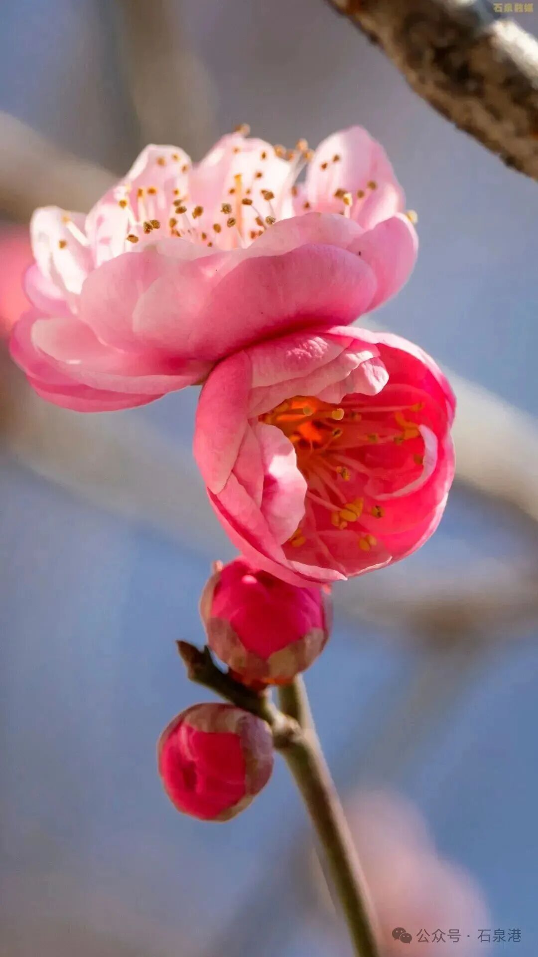 春节临近,石泉县城滨江大道的红梅悄然绽放,带来了春的气息。 红梅高约四五米,树冠如伞,粉红色花朵缀满枝头,远看似红霞漫卷,近闻凝香扑鼻,吸引了市民和游客赏花拍照。 红梅耐寒性极强,素有“报春花使”的美誉,它迎寒而开的姿态,更象征着坚韧不拔、不屈不挠、奋勇当先、自强不息的精神品格。 边晒太阳 边赏花 美哉~