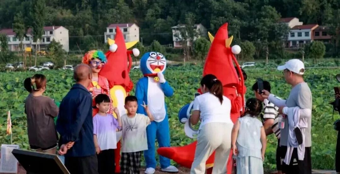 活动内容:开展哪吒系列游园互动见面会,滑稽小丑、小龙虾、青蛙王子互动等活动,吸引游客前往千亩荷塘游玩赏花。