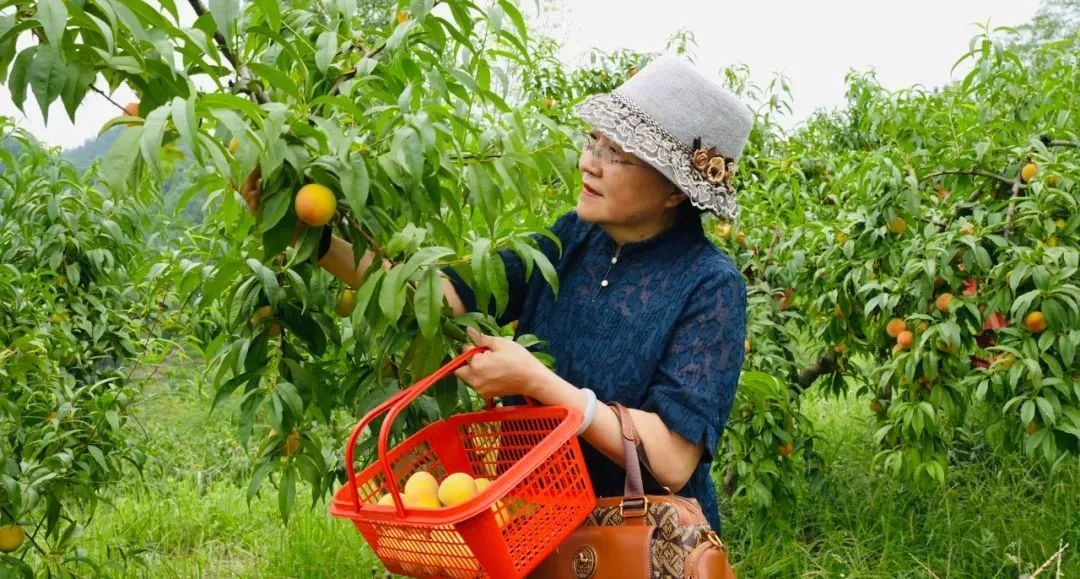 缤纷夏日,瓜果飘香 在汉阴县双乳镇江河村 黄桃种植基地里 一个个新鲜饱满的黄桃 密密麻麻挂满枝头 微风拂过,果香扑鼻 令人垂涎欲滴 汉阴县经贸科技局派驻江河村 第一书记 李峰: 黄桃种植面积达到120亩,是通过从杨凌农科院引进的黄金黄桃品种,每天能采摘5000斤。有两茬成熟期,一种是每年端午前后成熟上市;还有一茬是黄油桃,要到每年的七八月份成熟上市。 清香四溢的鲜桃吸引了众多游客前来观光采摘。游客们漫步桃园,感受如画风景,品尝爽口黄桃,体验采摘乐趣。 游客 郑女士: 口感很好,水分多,糖分含量也很高,品质很不错,准备给外地的朋友寄一点过去。 江河村土层深厚肥沃,光照充足,加上果农们精心管护,使得今年的黄桃品质上乘,非常受市场欢迎。 汉阴县经贸科技局派驻江河村 第一书记 李峰: 除草都是人工,不打任何除草剂,疏花疏果、病虫害防治我们都是请了专业的技术人员给我们做指导,再加上今年气温比较高,果子糖分积累得好,果子是自然成熟的,口感特别好。 约个时间 和家人一起去摘吧!