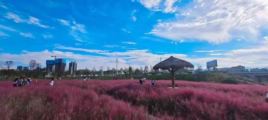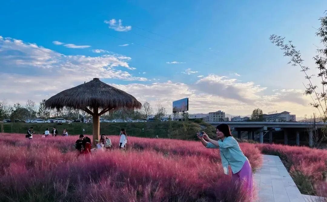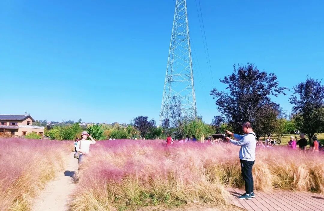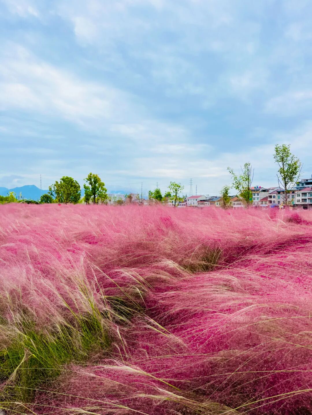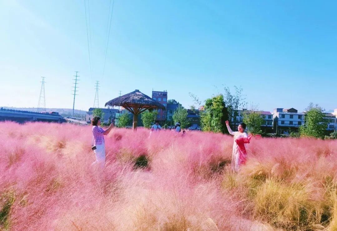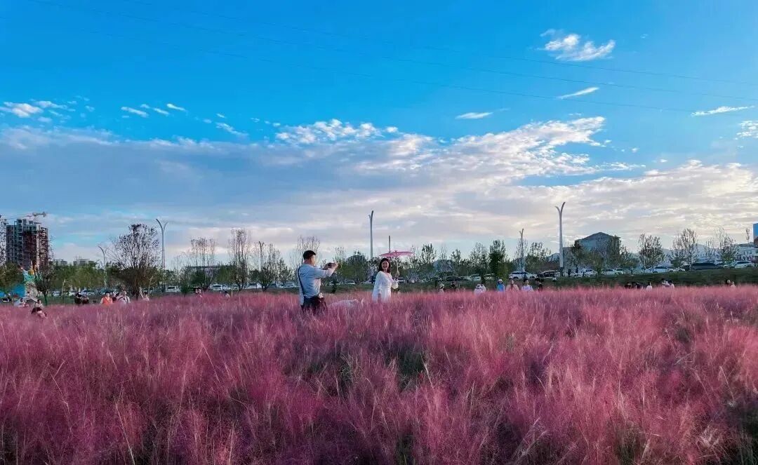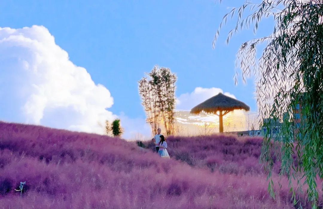 1.在一大片粉丝海洋中拍照,服饰颜色要和粉黛草的颜色区分开来,白色是最不出错的颜色,显得主角出挑有气质。除此之外,淡色系的颜色选择都会很好看,既与环境相互衬托,也突出了人物。