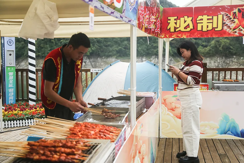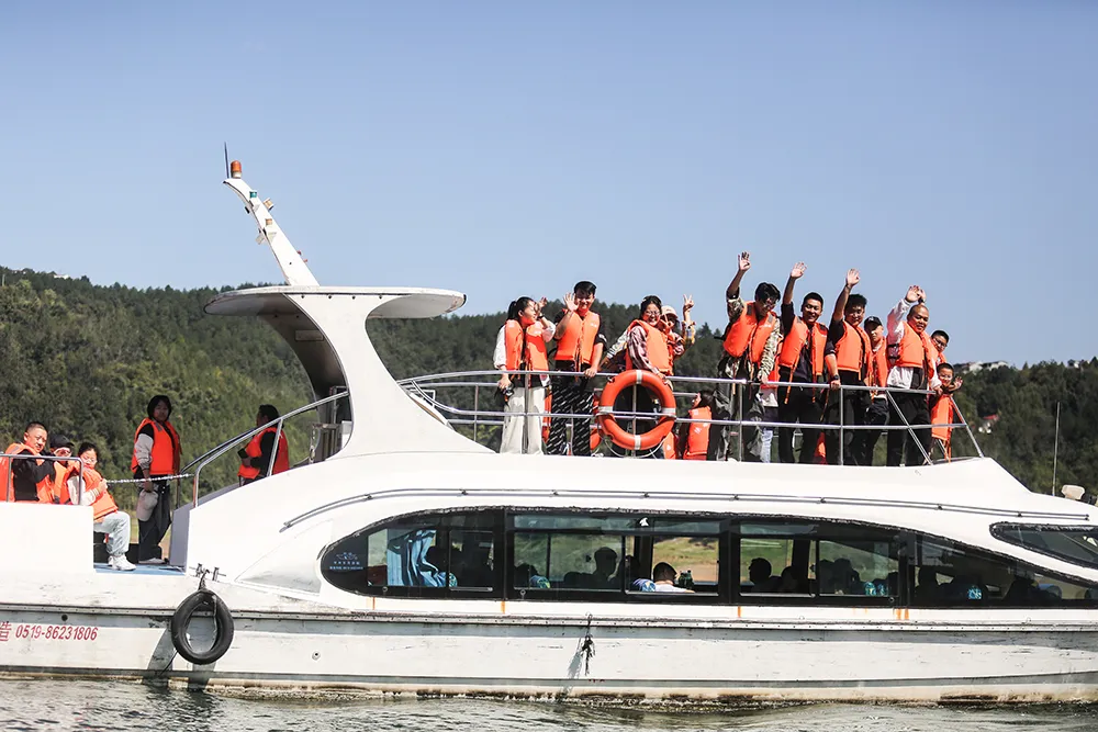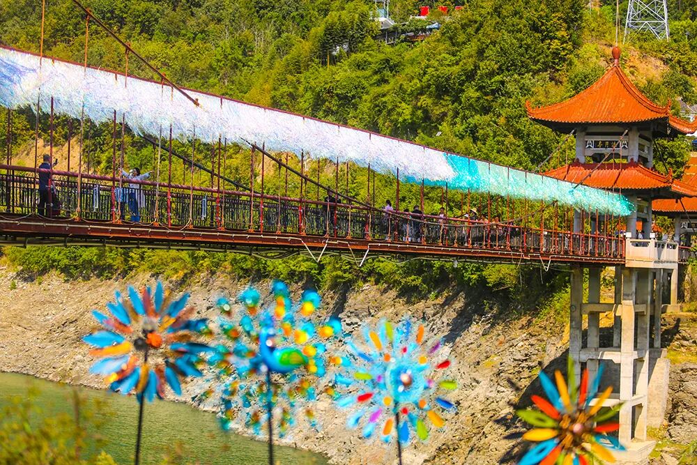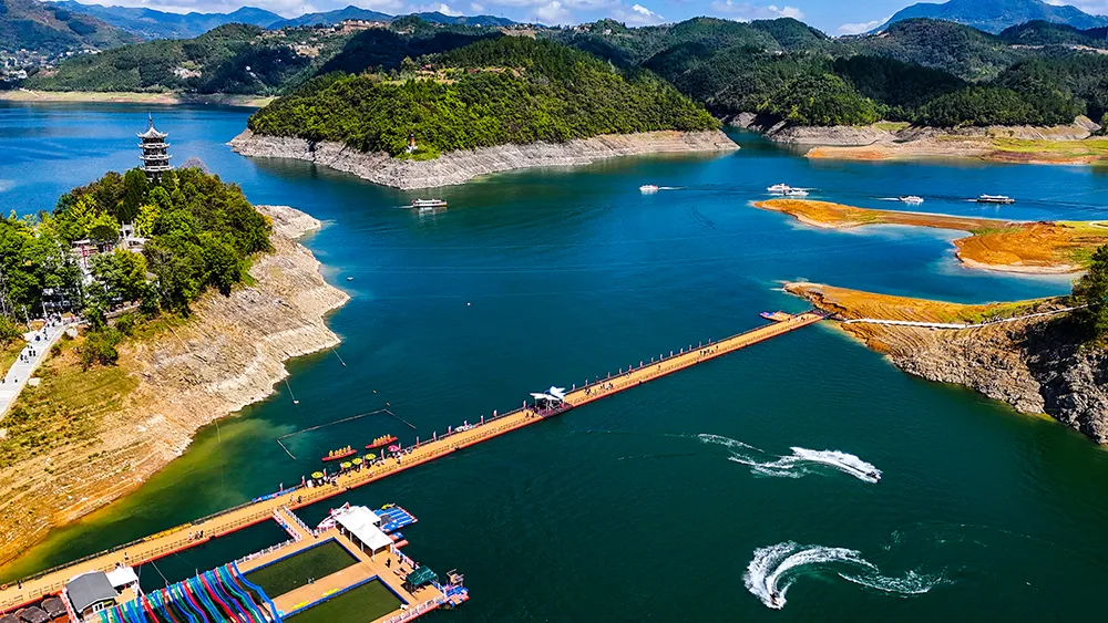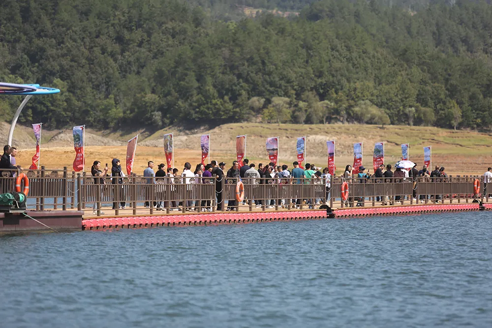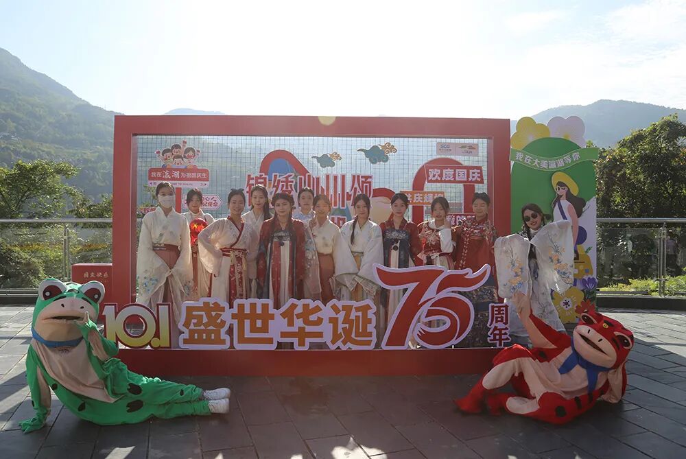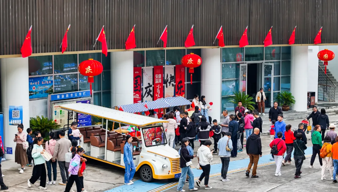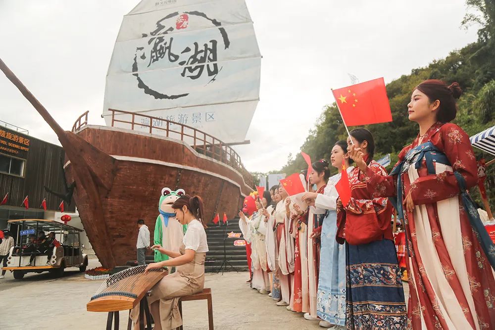 今年国庆黄金周期间 瀛湖景区推出 “锦绣山川颂,心悦瀛湖行”主题活动 毛玩集市、美食集市、精美礼品…… 丰富多彩的节日活动 让人应接不暇 非遗体验及休闲娱乐互动 带给游客们愉悦美妙的游玩体验 下面就和小编来一起回顾 今年十一瀛湖景区的超多精彩吧 + 五星红旗在瀛湖随风飘扬 节前,瀛湖景区即准备了隆重的氛围营造,鲜艳的国旗飘扬在景区各个角落,以及每艘游船上。完美的布展透着喜庆与悠闲,喜庆潮流的美陈,满足游客打卡留念的需求。 + 瀛湖快乐天团与游客同行 国风舞蹈、小乐队、网红直播,作为瀛湖的快乐天团,向每位来瀛湖的游客道上祝福,并以唯美舞蹈、爱国红歌与游客亲密互动,将瀛湖全域打造成欢乐的海洋。 + 热情、互动、惊喜、酸爽 毛玩集市、美食集市、精美礼品、溜溜梅,关注就送礼物,互动就有惊喜。精美的发卡、国旗帖、钥匙扣,到处都是中国红。溜溜梅让游瀛湖的酸爽与游客一路随行,玉兴岛、翠屏岛的美食集市,满足了游客对美味的需求。 + 山河壮丽 水源碧澈 行船向三岛,游客站在国旗下,在画里瀛湖阅历祖国的壮美山河、作为南水北调中线工程重要水源涵养地的瀛湖生态美。 + 曲径通幽处 空山鸟语妙 玉兴岛鸟语鸣唱,游客曲径通幽处,流连于与孔雀、秃鹫、白狐互动的欢乐。远眺织女石,感念千年痴守的不悔与坚毅。 + 让爱 在瀛湖得到升华 金螺岛,许愿池、许愿廊,成为人们缓解压力、期许美好生活的寄托。婚俗博物馆更名为安康市婚俗体验馆、暨安康市汉滨区首个户外婚姻颁证点,首次与游客见面,瞬间将爱情含量提高到庄重的层面。牛郎石、私语台、连理枝、同船渡,都是爱情美满的象征。沿着“爱在瀛湖山水间”彩绘台阶拾阶而上,再登临螺峰塔,目睹着塔内壁画,穿越四大爱情传说,最后站在塔顶,凭栏整个瀛湖景区,任金风拂面、眼前游船离离。 + 临波踏浪 刺激清凉 瀛湖浮桥,成为节日里游客最为集中的地方,这座长256米、宽6米的安康市最大水上浮桥,承载了三项快乐的寓意。草船借箭小游戏,让游客弯弓射矢、体验穿越三国的感觉。水上中心游客项目,让游客抓住今年最后一丝亲水清凉,在摩托艇与飞伞的刺激体验中,得到精彩的满足。水上滚筒、皮划艇、手摇船,成了孩子们乐不思归的乐园。单就浮桥本身,也足以满足游客临波踏浪、感受绝美水景。 + 翠屏流苏下 看到风的样子 翠屏岛玉清桥,被一道长长的流苏天幕覆盖,成为游客争相打卡的新晋网红地。瀛湖酒店、筱隐酒店、以及瀛家系列精品民宿,也都妆扮出国庆喜庆的氛围,使得宾至如归、爱国心到处洋溢。 + 瀛湖纪念币 承载完美旅程 不得不说,作为瀛湖文创的“瀛湖纪念币”,在节日期间得到游客的热情追捧,一枚枚雕刻瀛湖秀美山水、彰显瀛湖人文特色的纪念币,成为游客乐游瀛湖的唯美纪念,也是此次“锦绣山川颂,心悦瀛湖行”的最美记忆。 如果你还没来得及去瀛湖打卡 那就趁这金秋时节 约上你小伙伴 去瀛湖赏秋吧 来源:瀛湖景区 编辑:晏雯筠